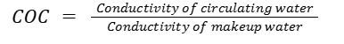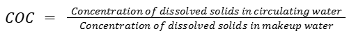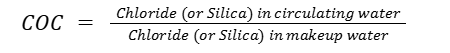 Misalnya, jika TDS dalam air yang bersirkulasi adalah 1.000 mg/L dan TDS dalam air pengisi adalah 250 mg/L, COC-nya adalah 4. Ini berarti padatan terlarut terkonsentrasi empat kali lipat dibandingkan dengan air pengisi.