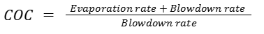 Dalam sistem yang laju alirannya diukur, COC juga dapat ditentukan dari keseimbangan antara evaporasi dan blowdown.